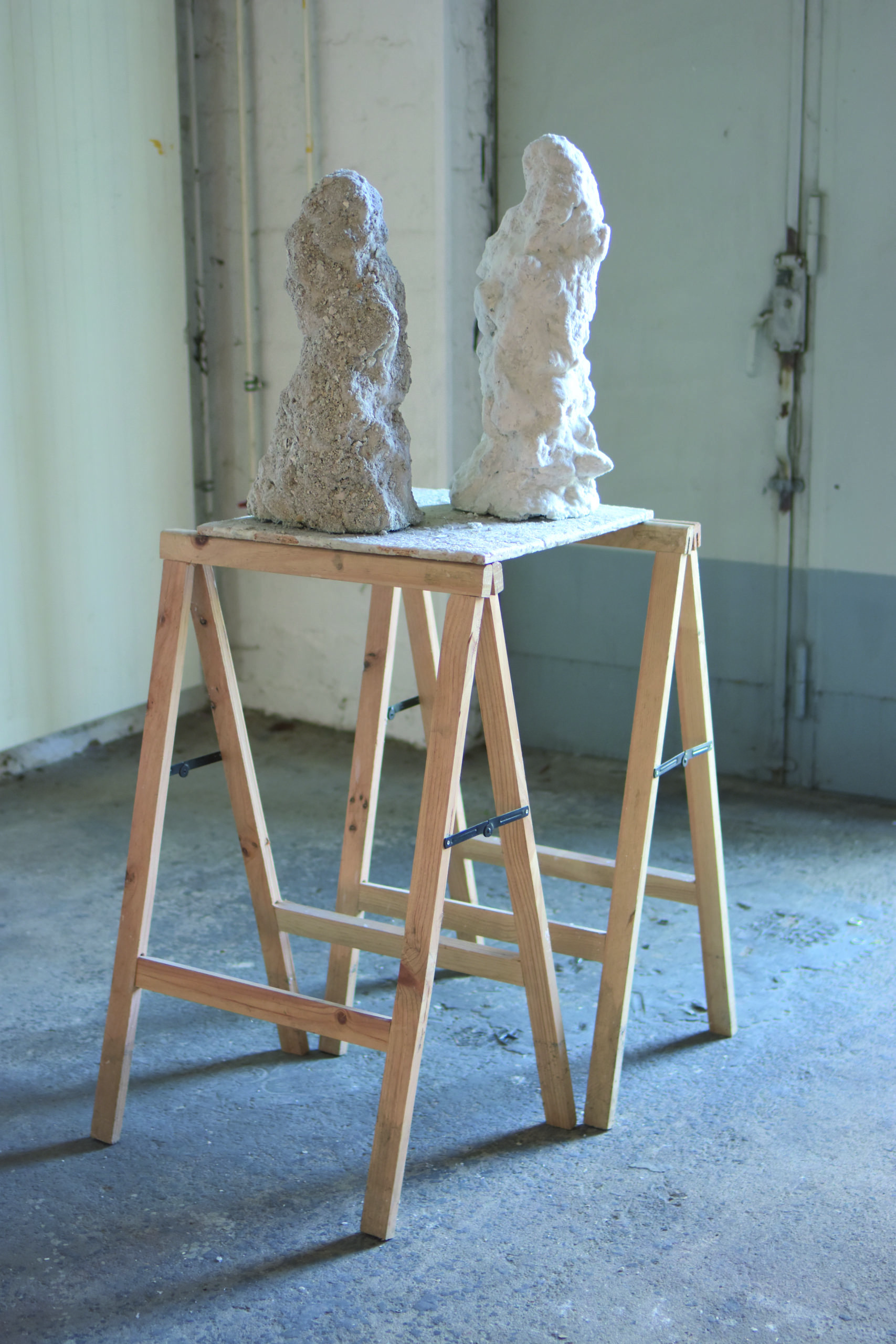 80x65x180 cm, Porenbeton, Wachs, Pigment, OSB-Platten, Holzböcke