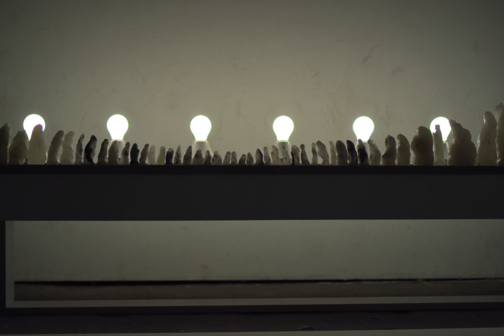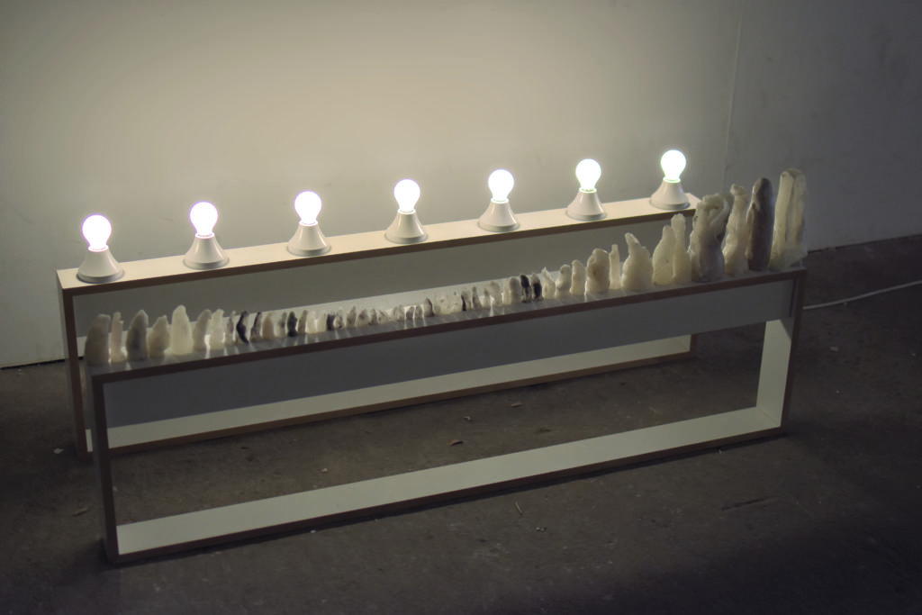 180x75x75 cm, Wachs, Pigment, MDF, Kabel, Fassungen, Glühbirnen